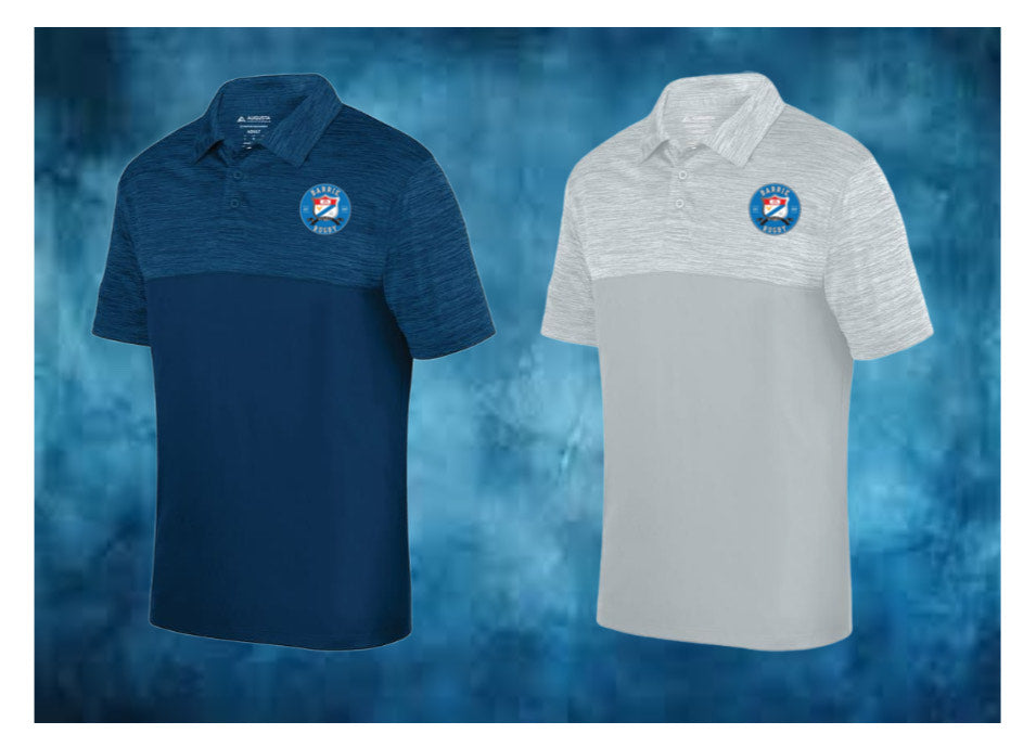 - 4.3 ounce 100% polyester heathered wicking knit top body, collar and sleeves